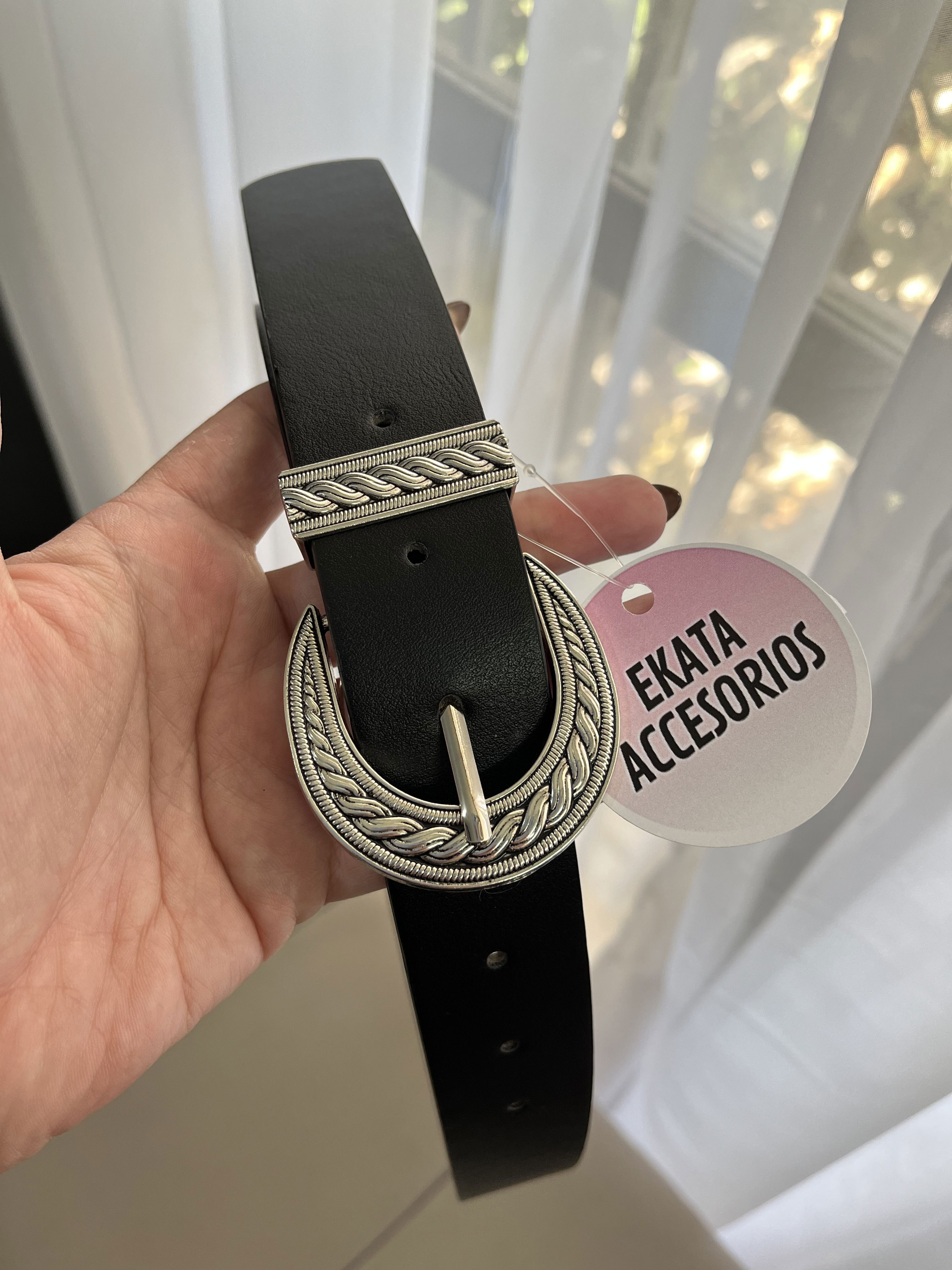 Cinto de material sintético - mide 105cm de largo en su totalidad.