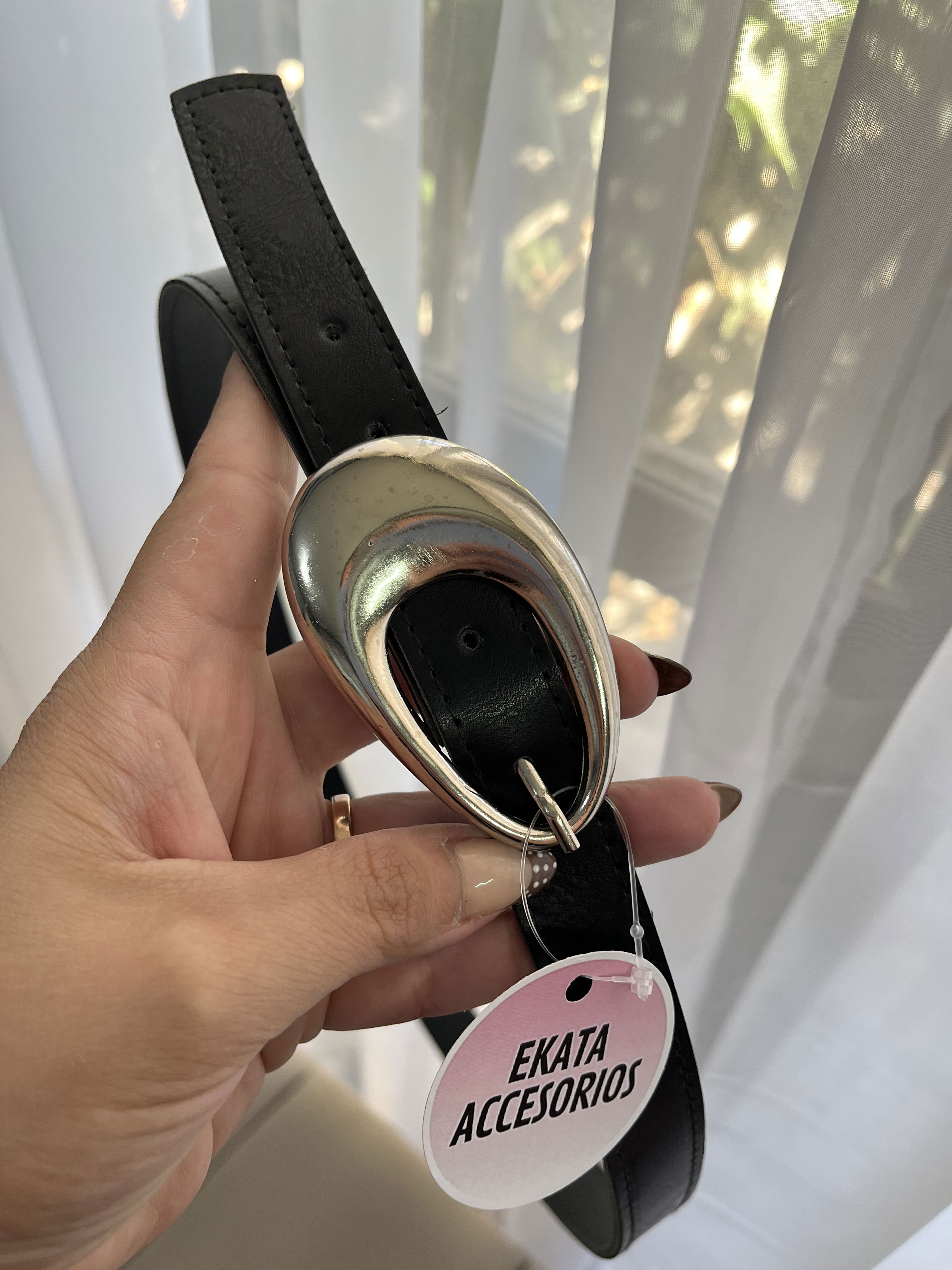 Cinto de material sintético - mide 107cm de largo en su totalidad.