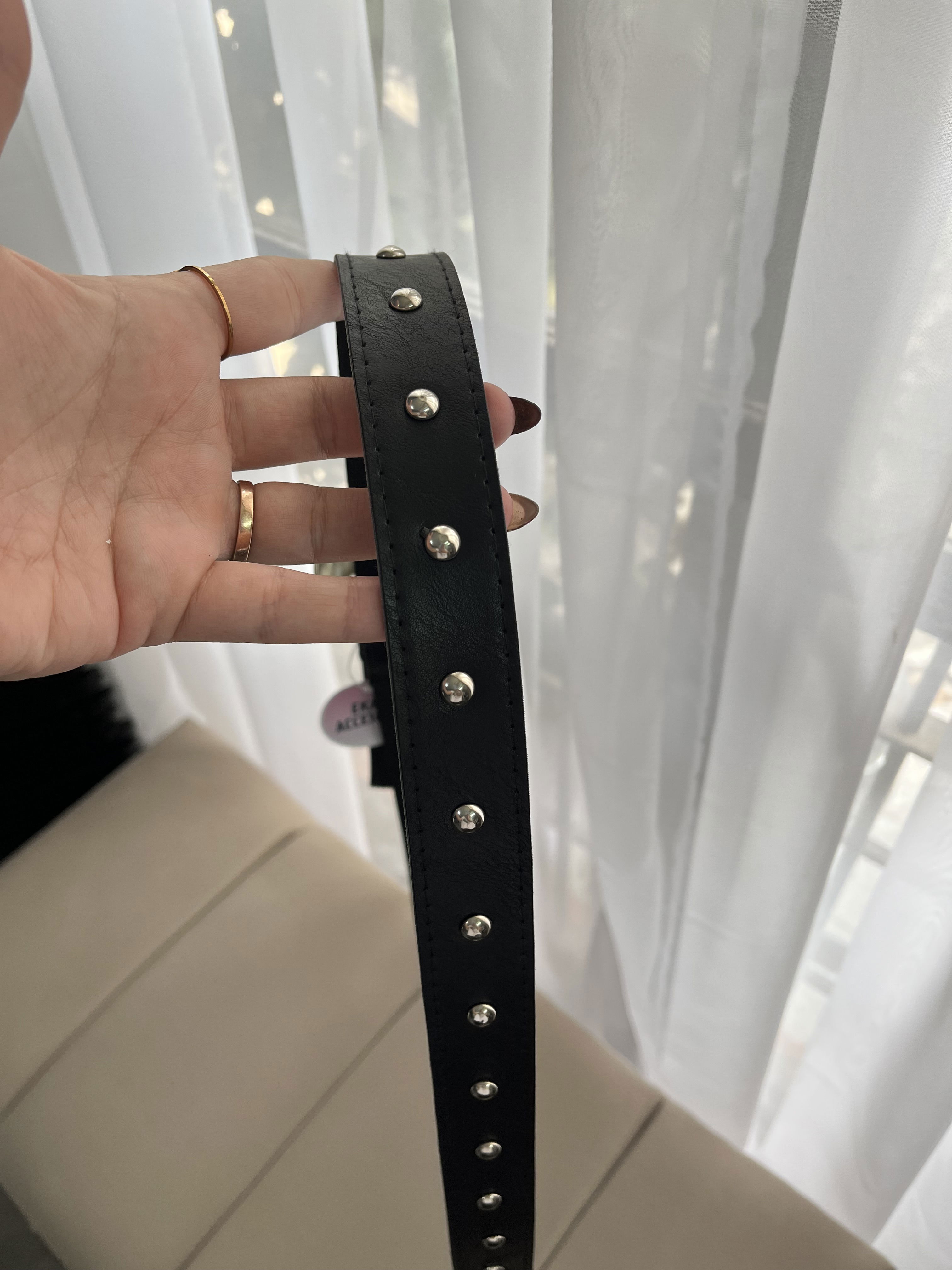 Cinto de material sintético - mide 136cm de largo en su totalidad.